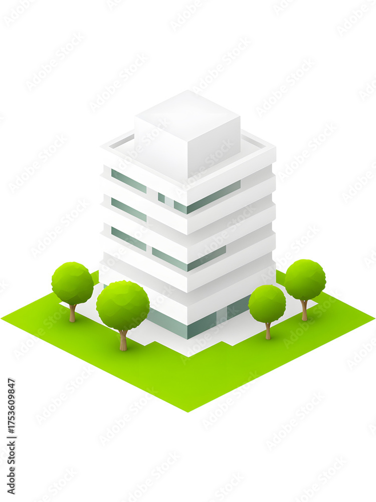 Modern white isometric building isolated on transparent background, perfect for architecture, city, and real estate design concepts. #1753609847