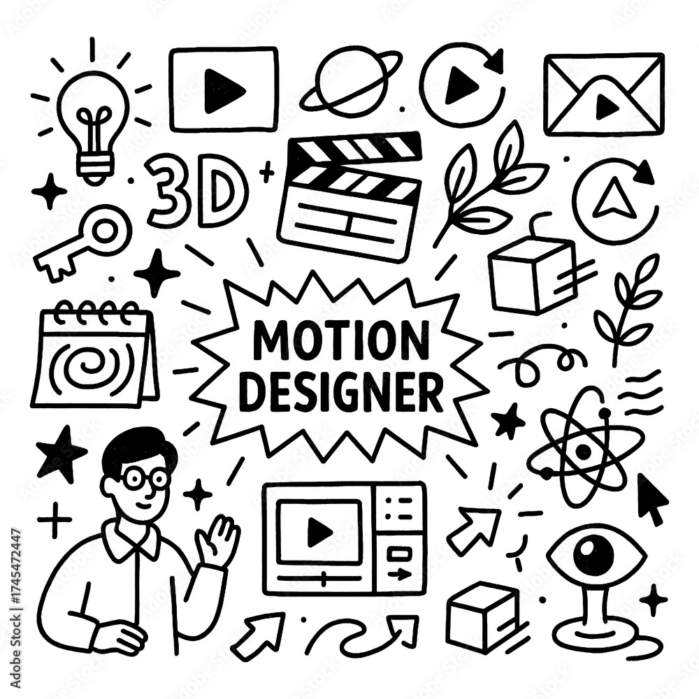 Motion designer doodle icons with animation, video editing and creative media elements, Transparent Background #1745472447