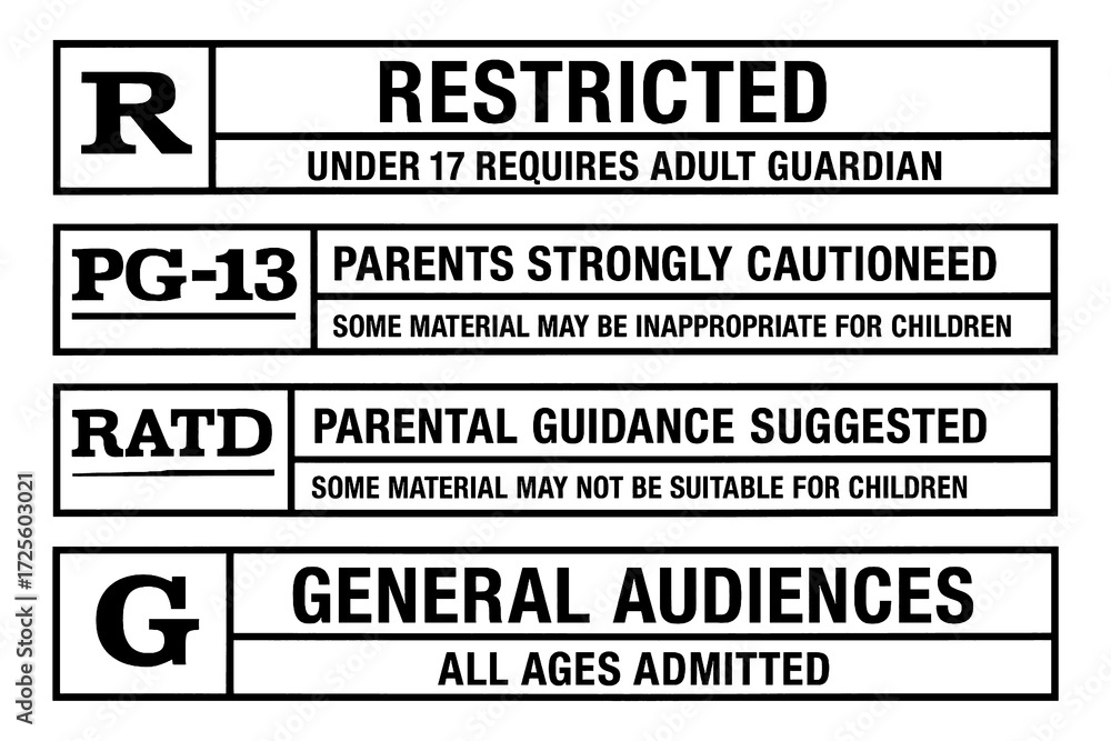 Movie rating labels set with parental guidance and restricted categories, Transparent Background #1725603021