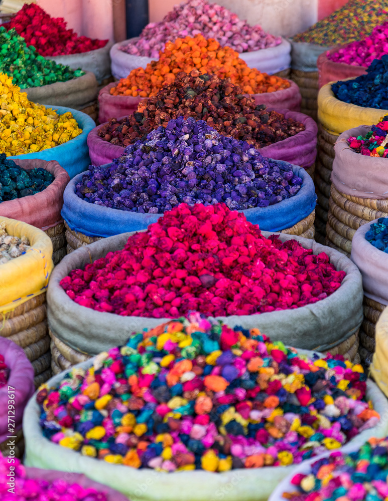 Multicolored dried flowers on sale in the souks of Marrakesh's medina in Morocco #271293617