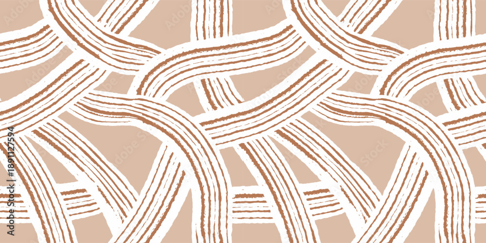 Neutral lines seamless pattern, abstract geometric home decor. Pastel beige aesthetic. Interwoven Terracotta and Beige Abstract Line Pattern. Modern organic flow #1891127594