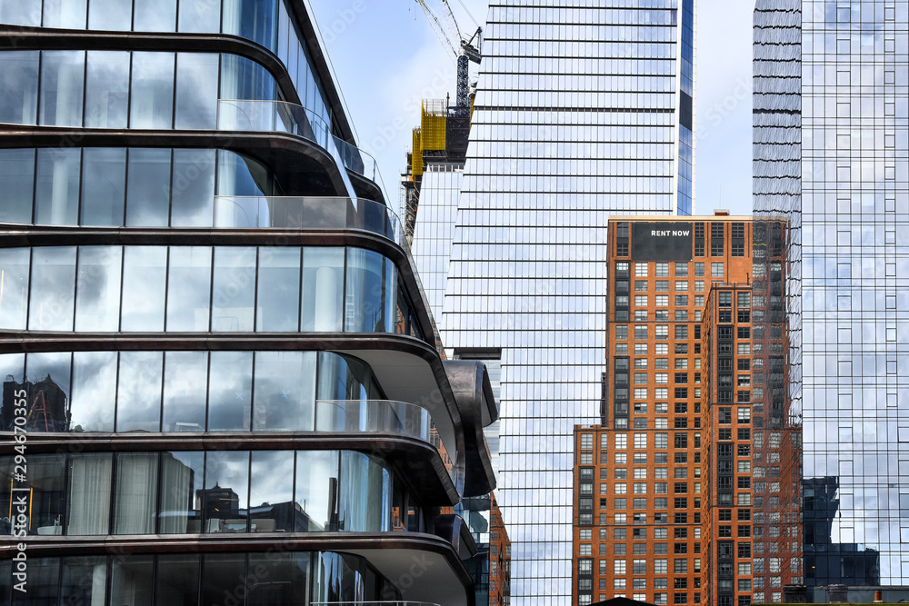 NYC streets buildings contrast. Different styles of buildings in NYC, USA. #294670355
