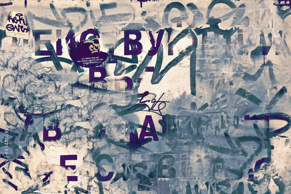 Old Billboard with Torn Posters. Vintage Background and Texture for text or image. Urban Wall with Ripped Posters. Grunge Abstract Isolated Background. #434818999
