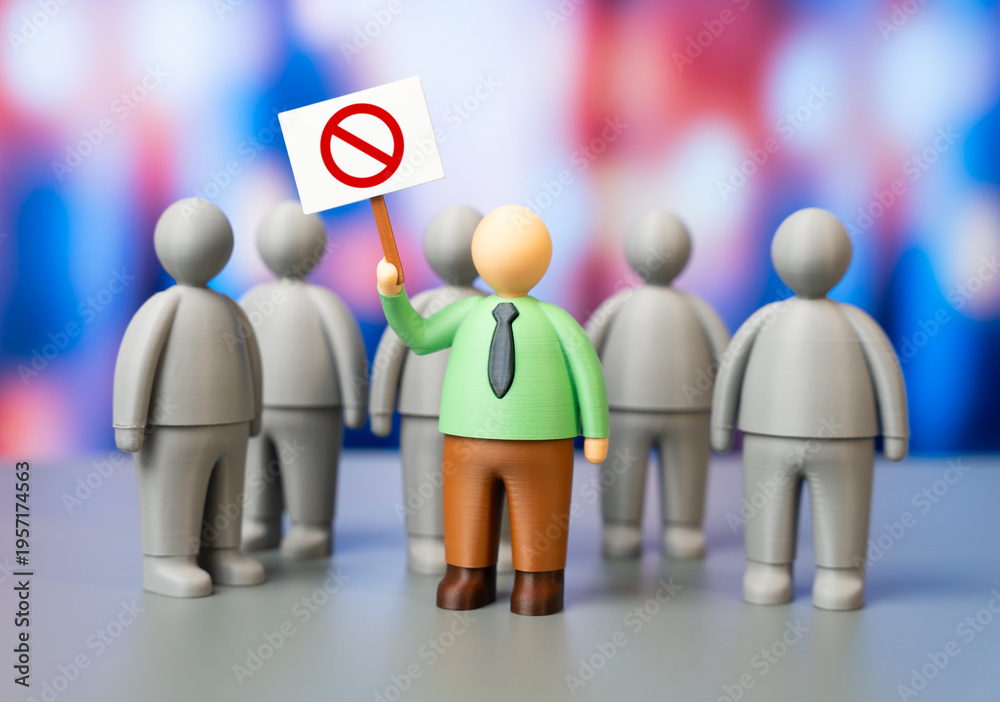 One person protests in a crowd. A solo picket, a protest leader. Individual activism stands out in mass movement. Leadership and courage inspire change and influence public opinion and social dynamics #1957174563