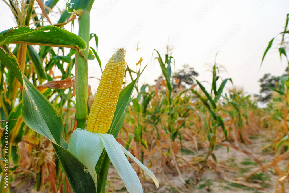 Organic corn plants standing tall in the warm sunlight before harvest. #1774308665