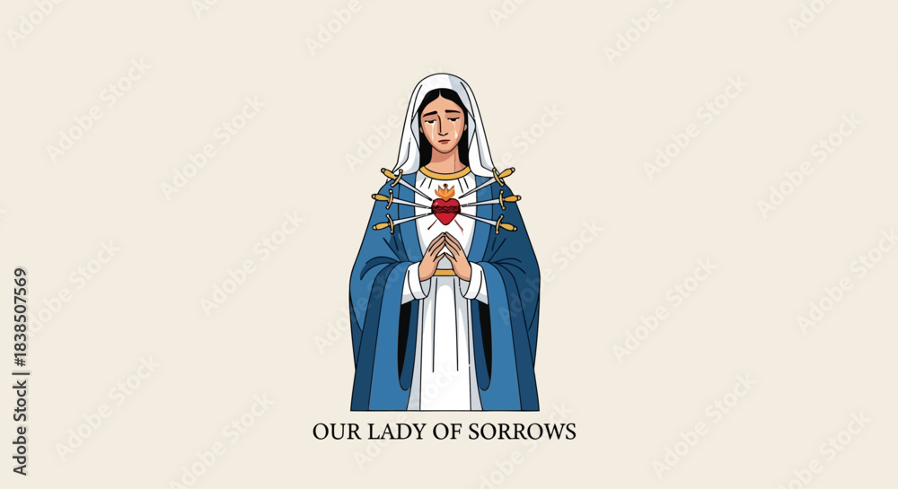 Our Lady of Sorrows illustration conveying compassion and faith, evoking serenity and reverence for religious themes, perfect for spiritual reflection and inspirational designs #1838507569
