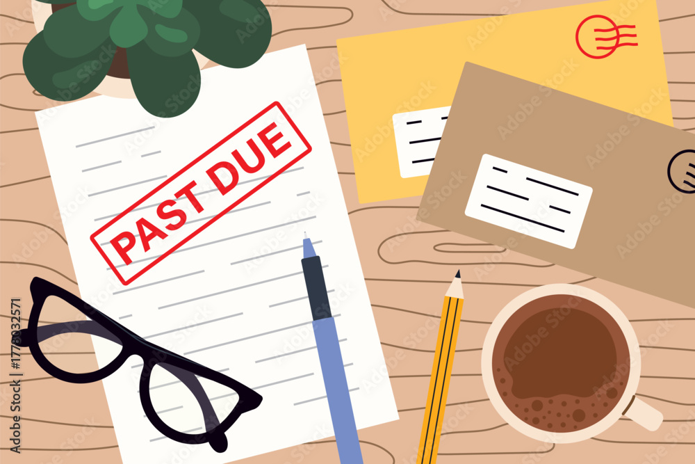 overdue bills and unpaid invoices concept; personal finance, budgeting, financial problems, payment delays- vector illustration #1778032571