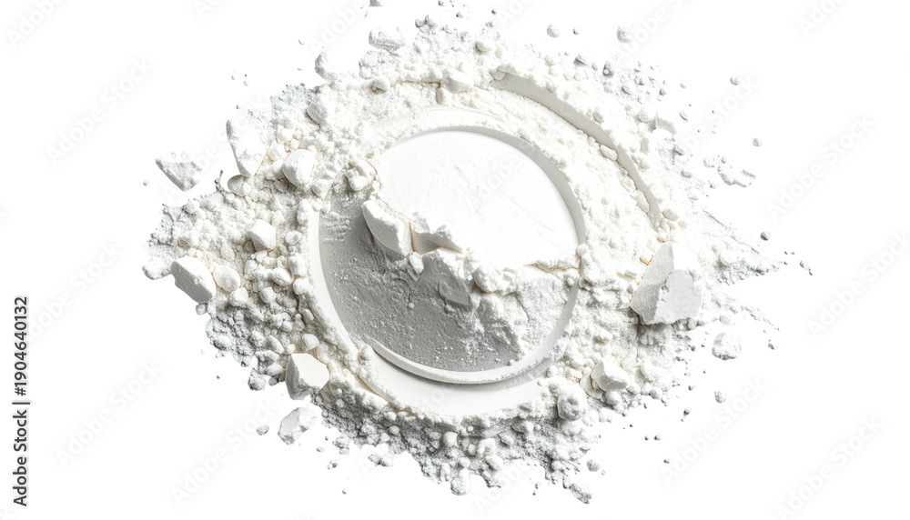 Overhead view of a circular pile of white powder on a dark background #1904640132