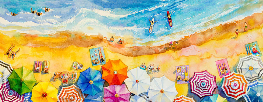 Painting watercolor seascape Top view colorful of lovers, family. #268270448
