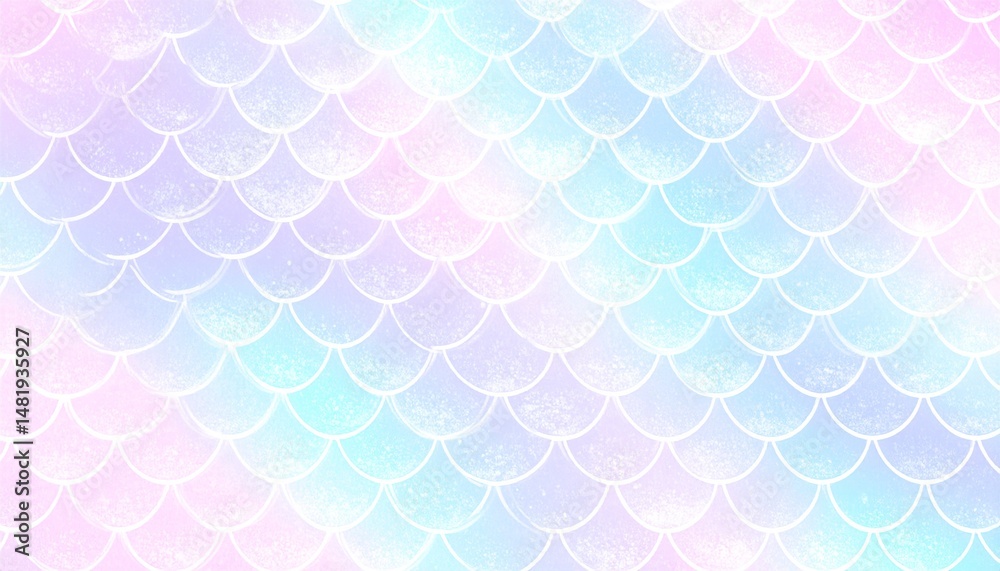Pastel mermaid scale pattern with pink purple and blue colors and white outlines #1481935927