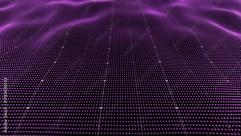 Patterned elevation of glowing nodes in 3D field forming abstract terrain surface #1783036133