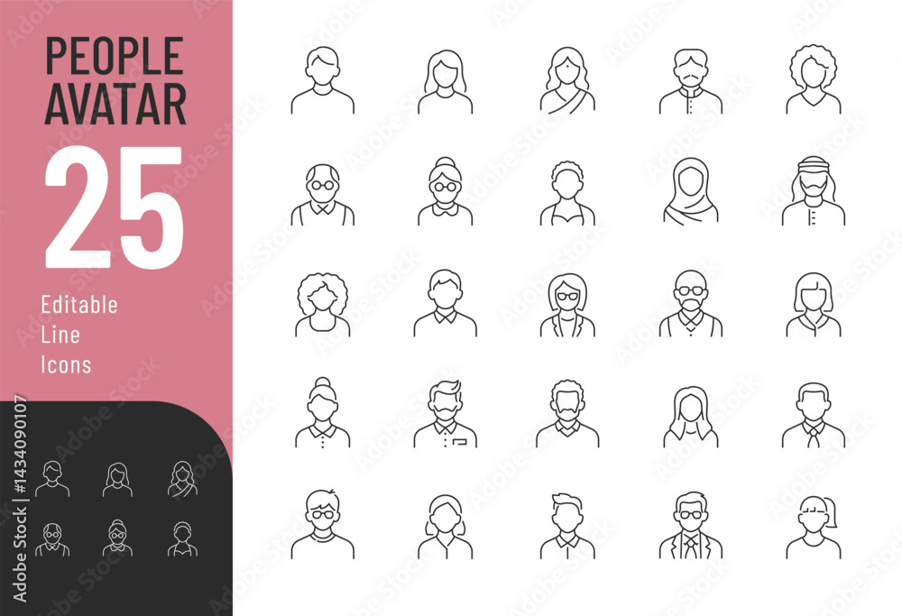 People Avatar Line Editable Icons set. Vector illustration in modern thin line style of people portraits of different ages and nationalities in a minimalist style. Isolated on white background. #1434090107