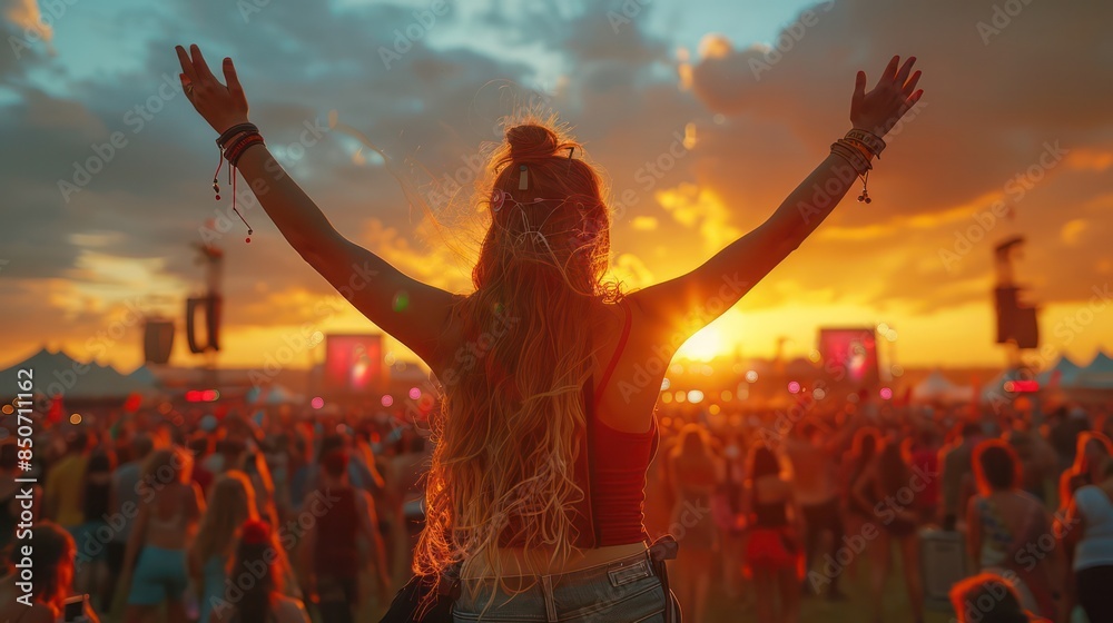 People enjoying music at Glastonbury Festival, UK. #850711162