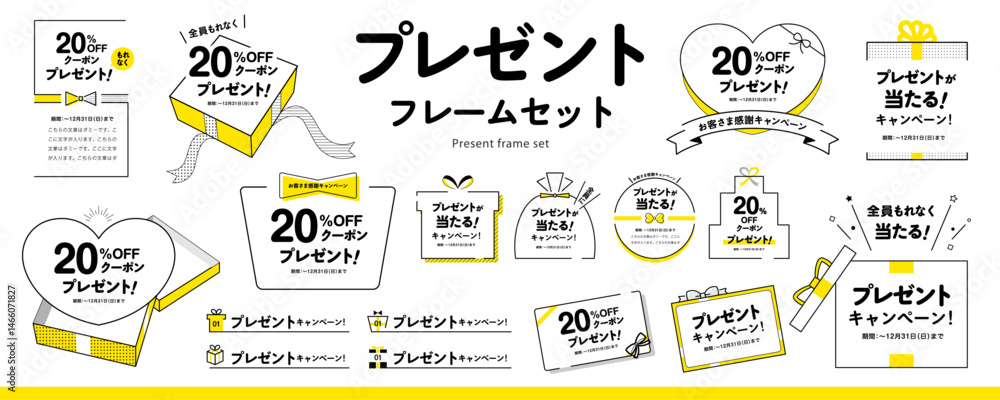シンプルなプレゼント、ギフトのフレーム素材セット(タイトル、見出し、枠)/黄色 #1466071827