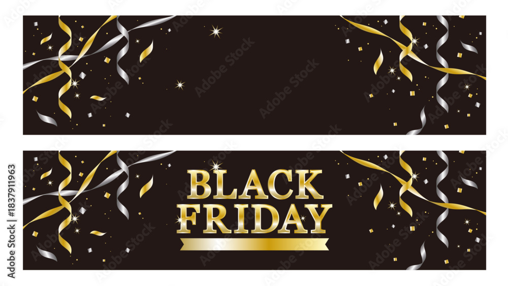 金銀のリボンが舞い散る背景イラスト素材 ベクター バナー ブラックフライデー #1837911963