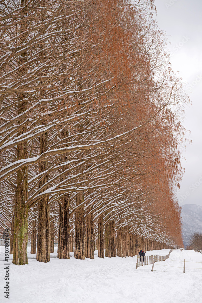 滋賀 メタセコイア並木の雪景色 #1907805414
