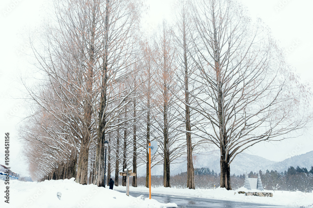 滋賀 メタセコイア並木の雪景色 #1908451156