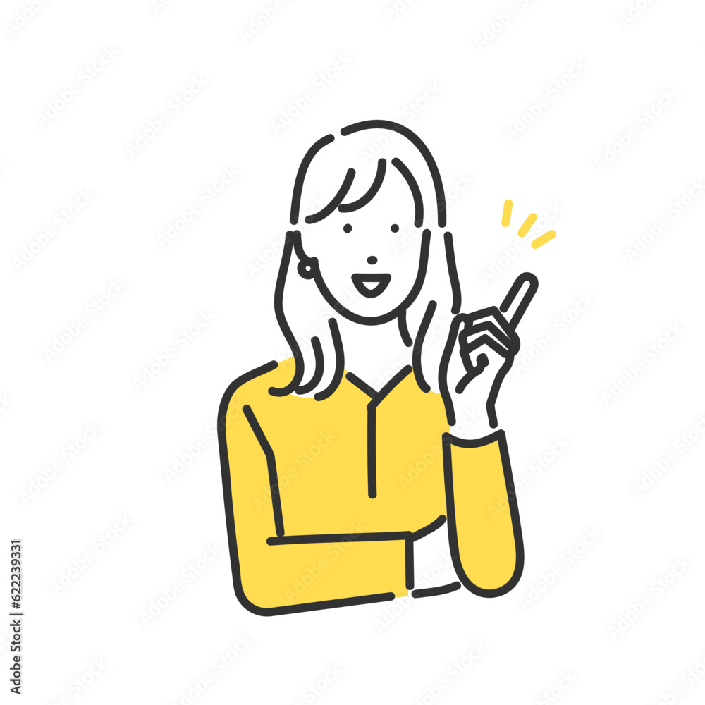 笑顔で指差しをする女性のシンプルな線画イラスト #622239331