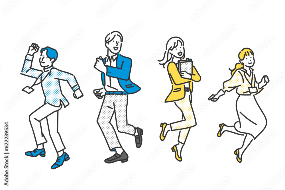 ジャンプをするスタートアップ企業で働く人たちのイメージイラスト素材 #622239534
