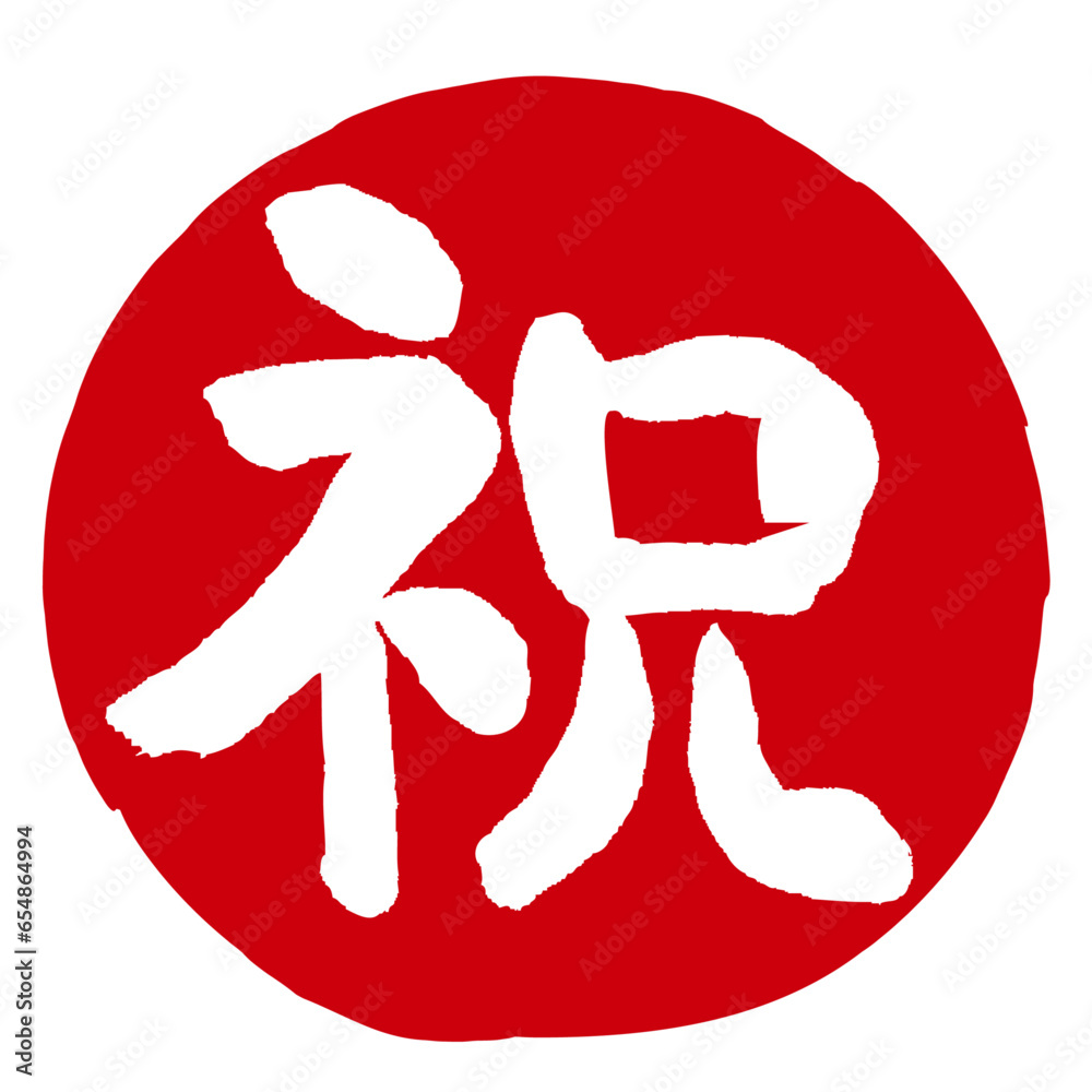 祝の文字の入った手書きハンコ風マーク アイコン マル祝 #654864994