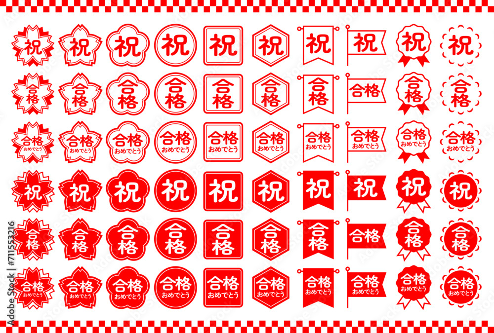 祝 合格 合格おめでとう ハンコセット(赤) #711553216