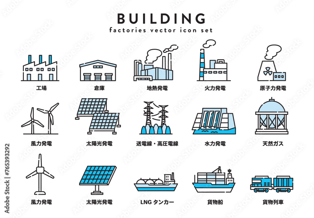 建物 発電 エネルギー アイコン セット #765393292