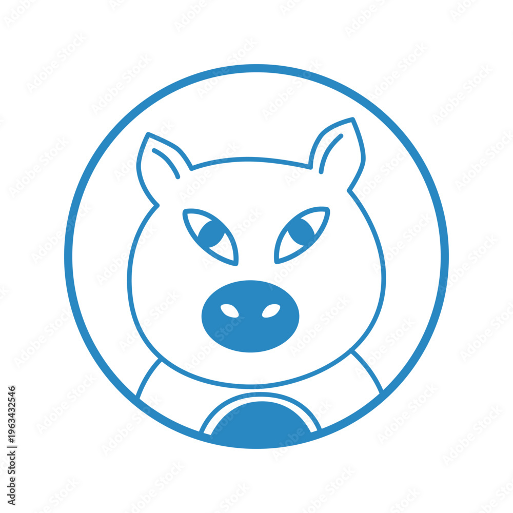 Pig, icon, head, vector, illustration, minimalist, circle, logo, farm, line, simple, drawing, blue, outline, isolated, white, background #1963432546
