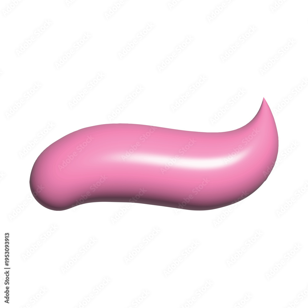 Pink Cosmetic Cream Stroke 3D Vector Illustration. Realistic Rose Gel Smear for Skincare, Moisturizer, Toothpaste and Beauty Product Design. Shiny Glossy Texture Isolated on White for Marketing. #1953093913