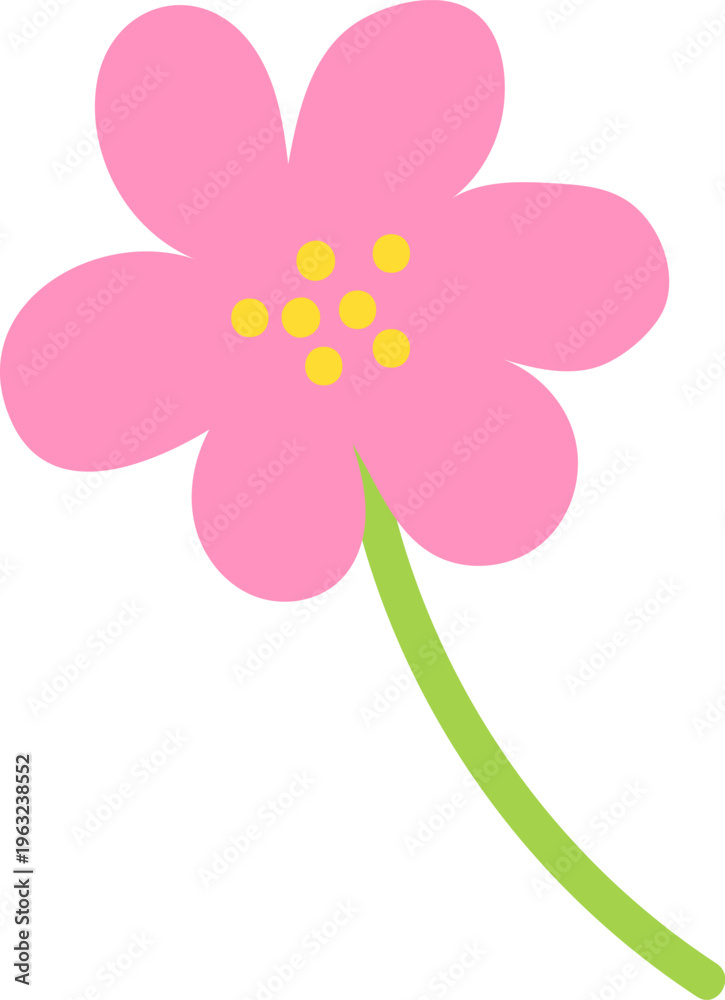 Pink flower with green stem illustration on white #1963238552
