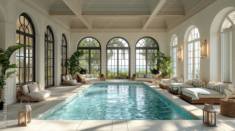 Piscine intérieure luxueuse dans une maison de style New England sur une île privée #1162142476