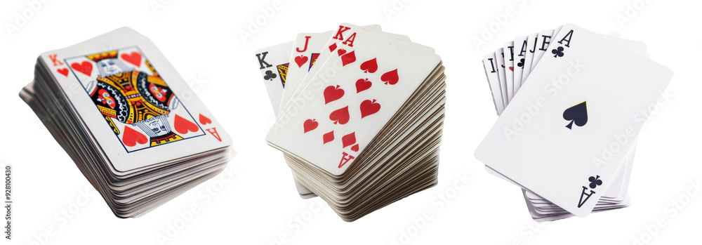 Playing cards set isolated on transparent background with different suits #928100430