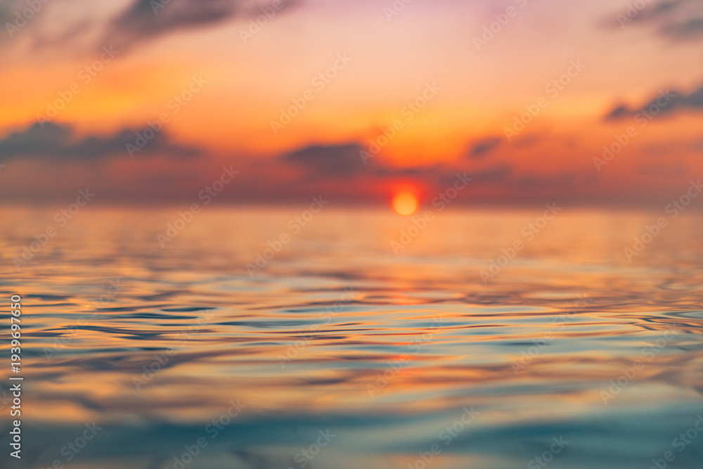 Radiant tranquil sunset ocean closeup with colorful reflections calm water surface serene relaxing seascape nature background. Serene waves ripples peaceful sunlight #1939697650