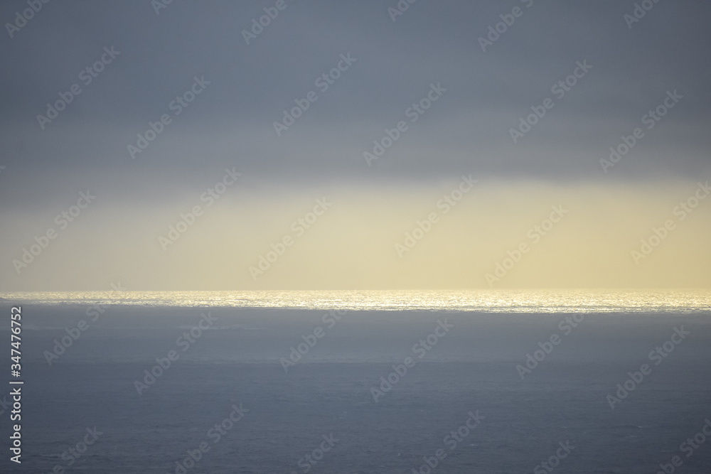 Rays of light that pass over the clouds and illuminate the sea like spotlights. Concept of nature and sea. Galicia, Spain #347476752