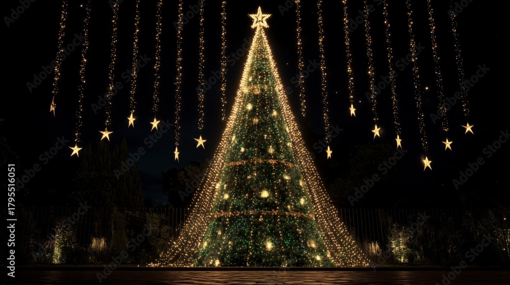 Árbol decorado por navidad, el fondo es negro #1795516051
