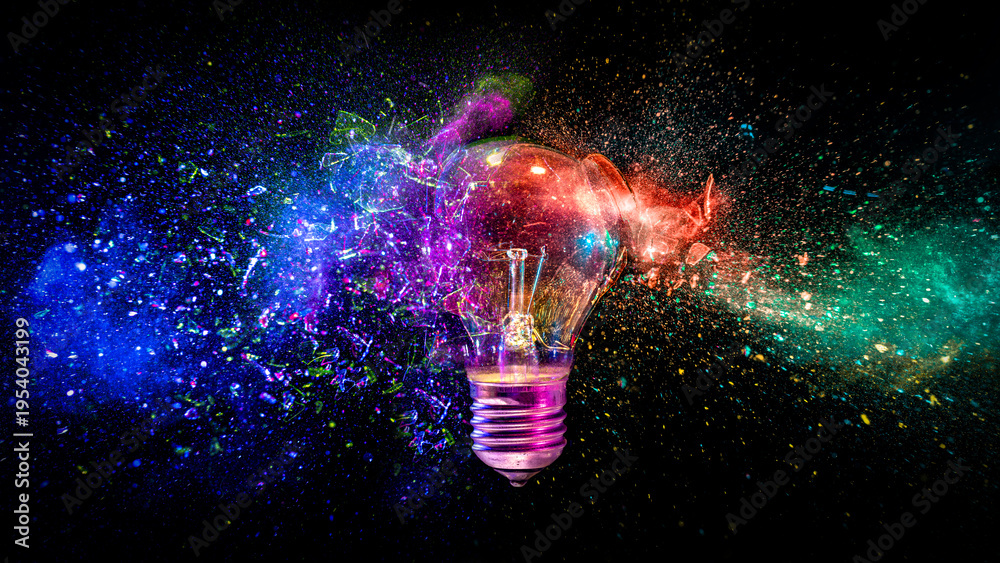 Real Light bulb bursting colorful vibrant energy #1954043199