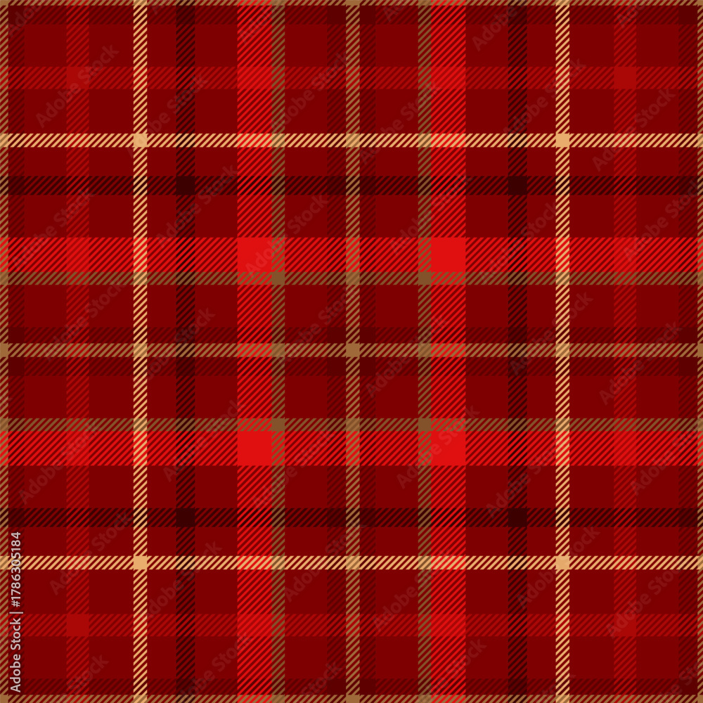 Red plaid seamless pattern. Repeated gold check ekose. Repeating checker fabric for design prints plaids. Checks square line. Tartan repeat textile. Vichi cloth. Scottish flannel. Vector illustration #1786305184