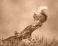 Red squirrel percehd on the end of log with a blue/green background. Taken in the Cairngorms National Park, Scotland. #456711891