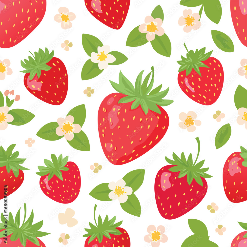 Red strawberries and white flowers seamless pattern on white background strawberry #1680099905