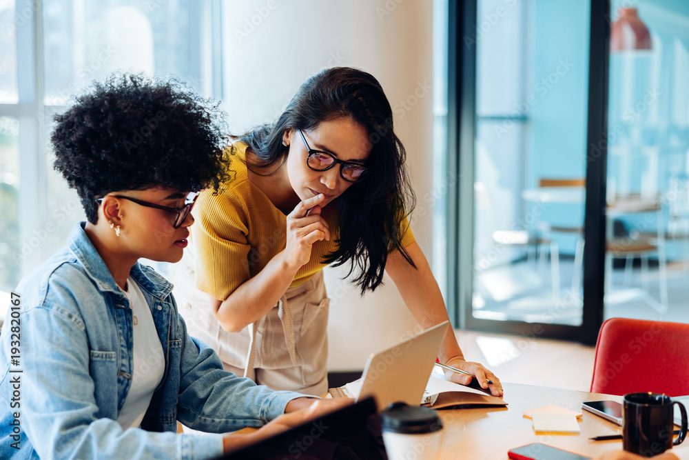 Reviewing the details: Teammates refining work at the laptop #1932820167