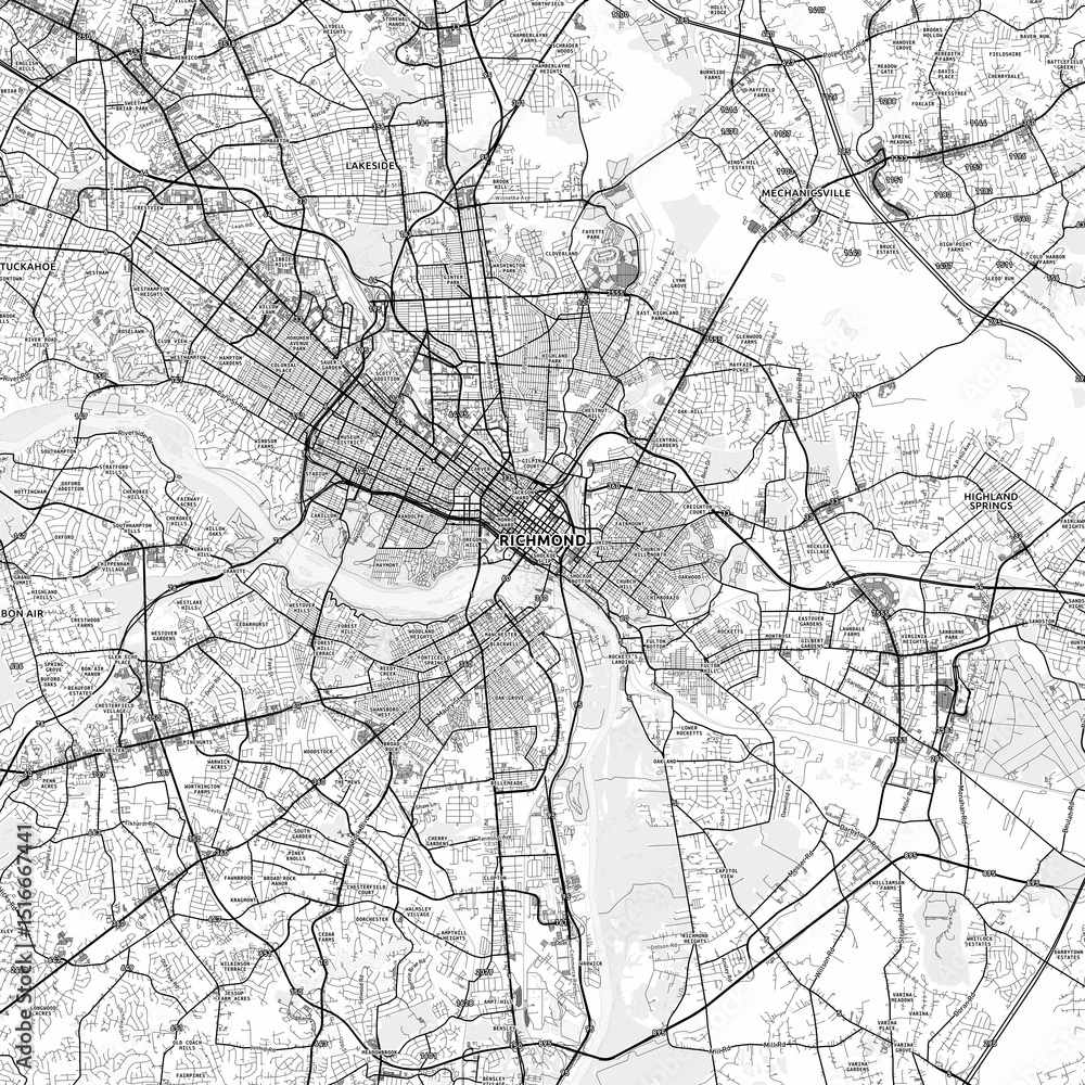 Richmond Area Map with Labels and Neighborhoods - One color, minimalistic design #1516667441