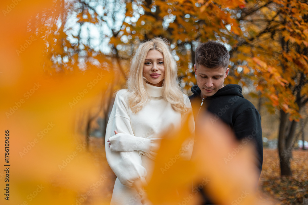 Romantic moment between a couple enjoying the beauty of fall season. #1756109665