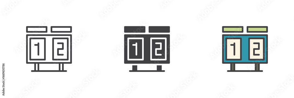 Scoreboard numbers icon set in line, solid and filled outline style #1669630786