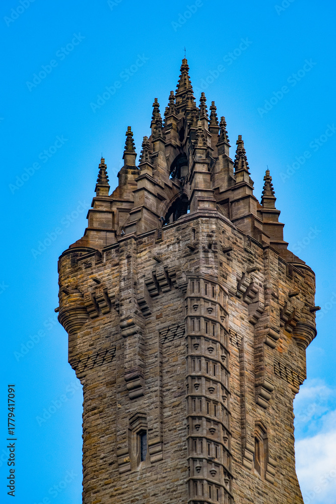 Scotland, Uk: view of the National Wallace Monument, tower on the shoulder of Abbey Craig, hilltop overlooking the city of Stirling, built to commemorates the national hero Sir William Wallace #1779417091