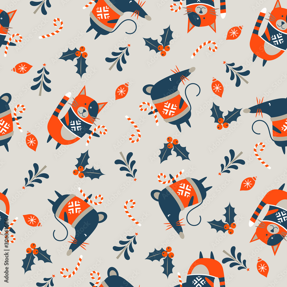 Seamless Christmas pattern on light background. Vector illustration. #306861680