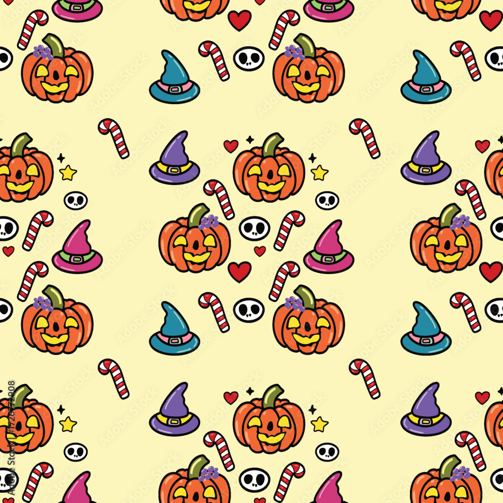 Seamless Halloween pattern with ghosts stars and bats, Halloween seamless pattern with pumpkins. Ghost's Halloween seamless pattern #1726772908