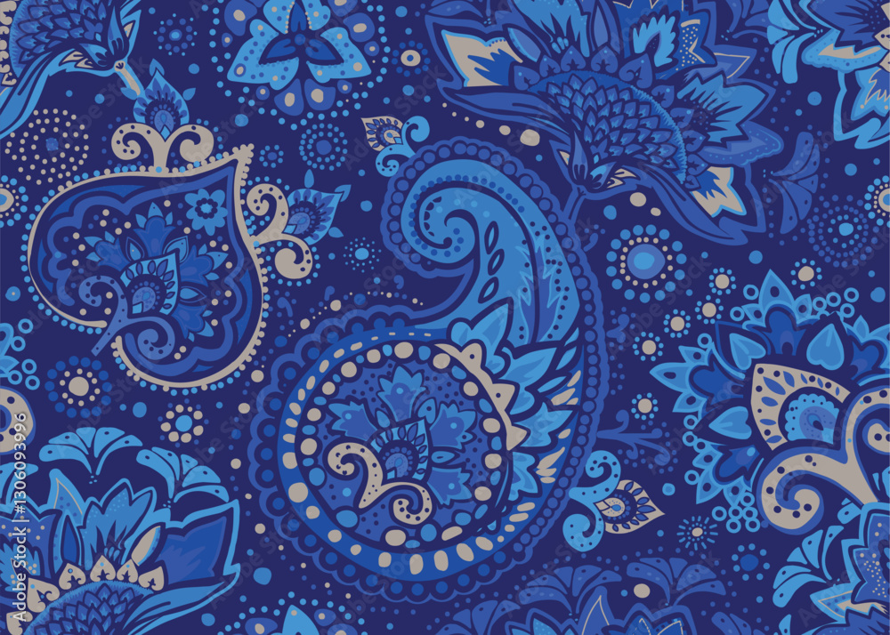 Seamless paisley pattern in Oriental style with floral and ethnic motifs for printed fabric, wallpaper, and packaging #1306093996