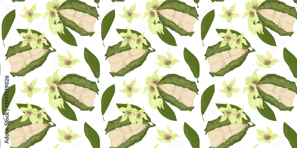 Seamless Pattern Kola Nut Tropical Seed from Cola Tree #1947019026