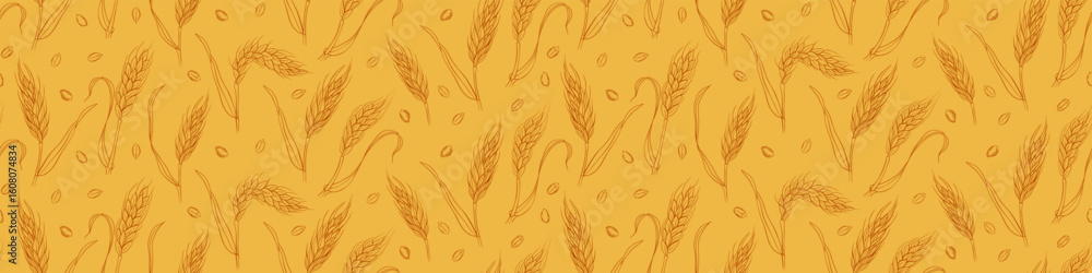 Seamless pattern with hand drawn wheat ears and grains. Vector illustration. #1608074834