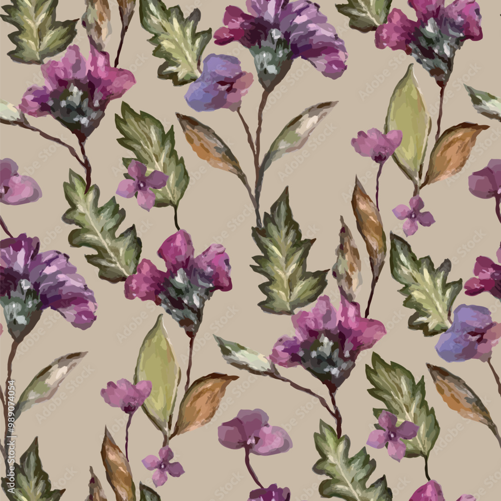 Seamless vector pattern of elegant purple violets #989074054