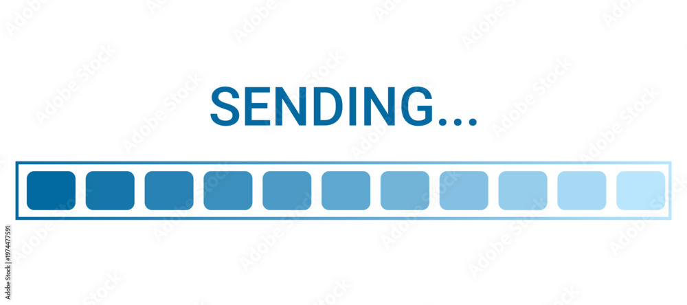 Sending bar with gradient circles progressing. Digital progress indicator for web interface or software application. Modern data transfer status icon, technology computing design. Vector illustration #1974477591